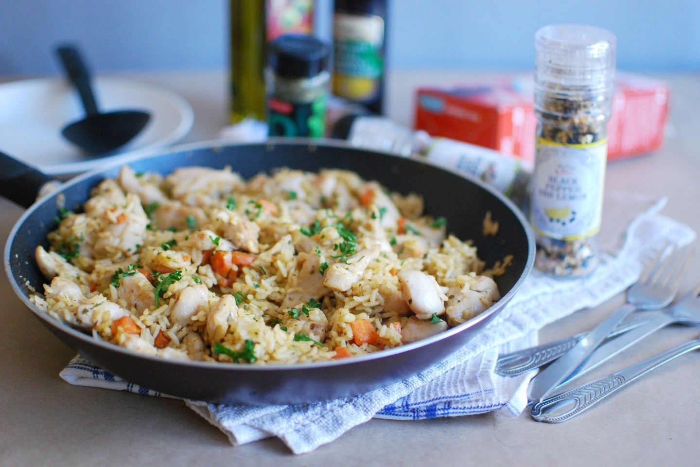 Patiekalas viename puode: ryžių troškinys su vištiena
