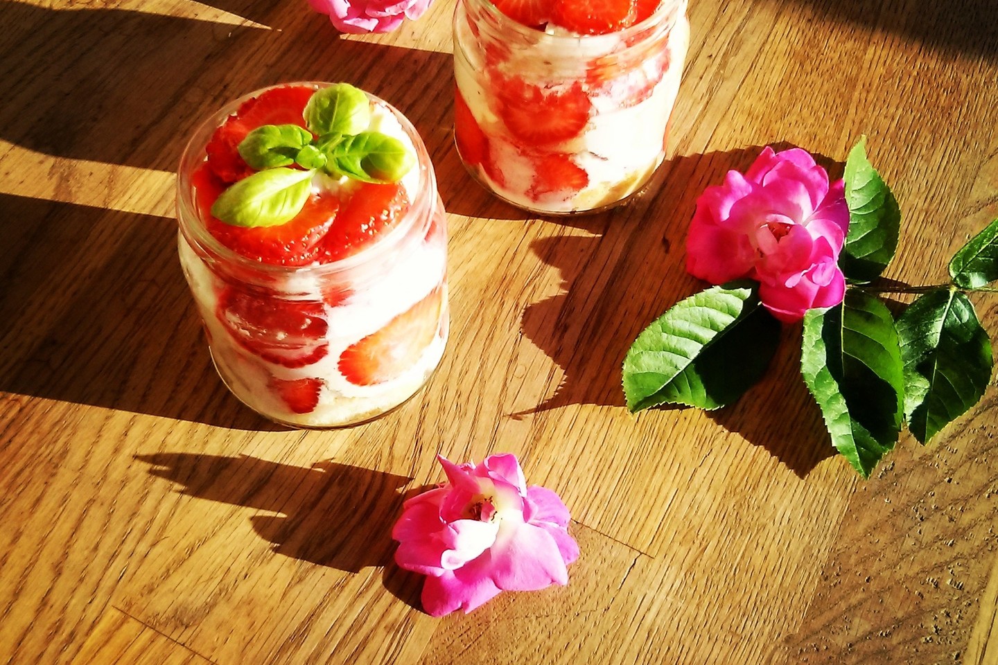 Maskarponę išplakame su vaniliniu cukrumi ir medumi. Sausainius pamirkome piene. Tuomet sluoksniuojame į indelį susmulkintus sausainius, maskarponę ir braškes. Skanaus!