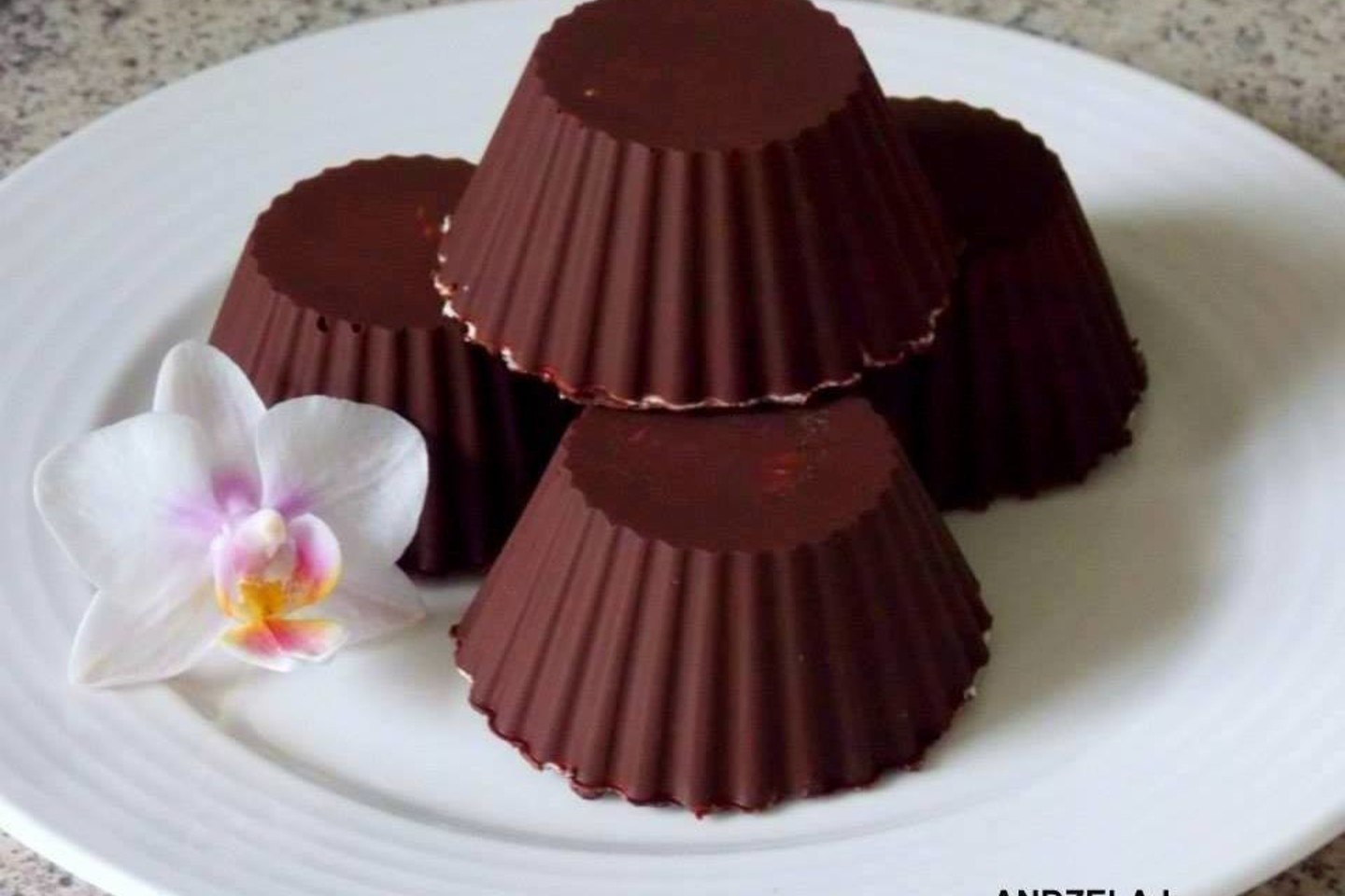 Šokoladą ištirpinti vandens vonelėje, ištepti juo silikoninių keksiukų formelių kraštus ir dėti į šaldymo kamerą.