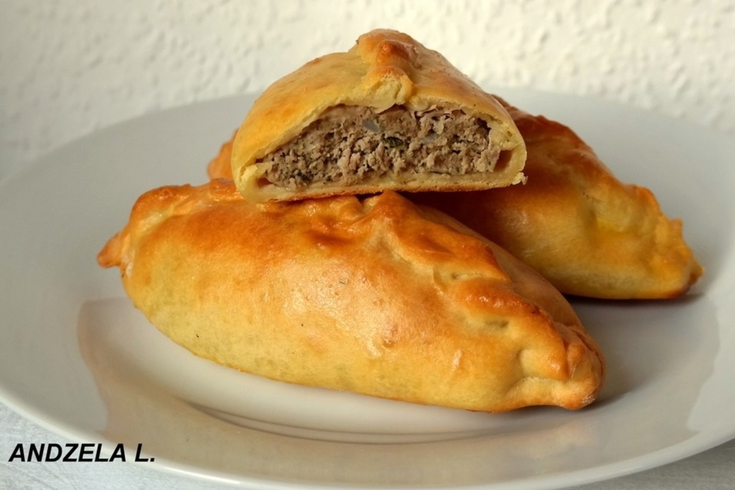Padaliname ją į 9 dalis, iškočiojame paplotėlius, dedame įdarą, formuojame norimą formą ir dedame ant skardos, ant kurios patiesta kepimo popieriaus.