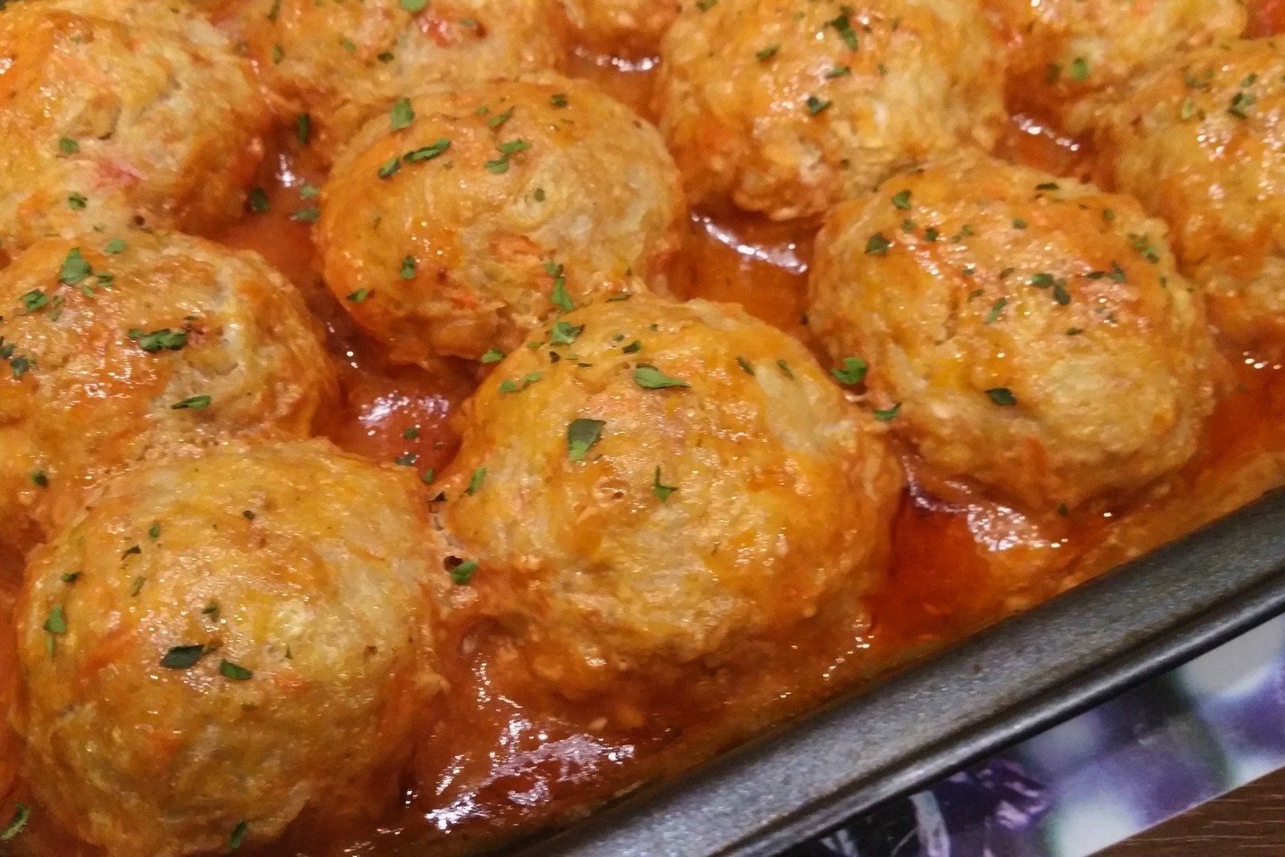 Juos sudėjau į kepimo formą ir užpyliau pomidorų padažu (kelis šaukštus pomidorų padažo užpyliau vandeniu ir išmaišiau).