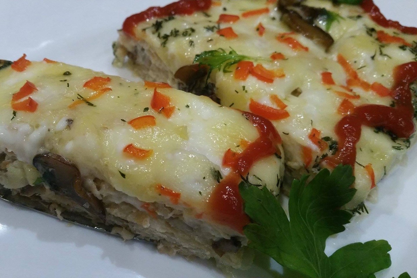 Pertepimas paruoštas, juo pertepiau iškeptus lakštus, ant viršaus užtarkavau fermentinio sūrio ir pašoviau į orkaitę, kad sūris išsilydytų.