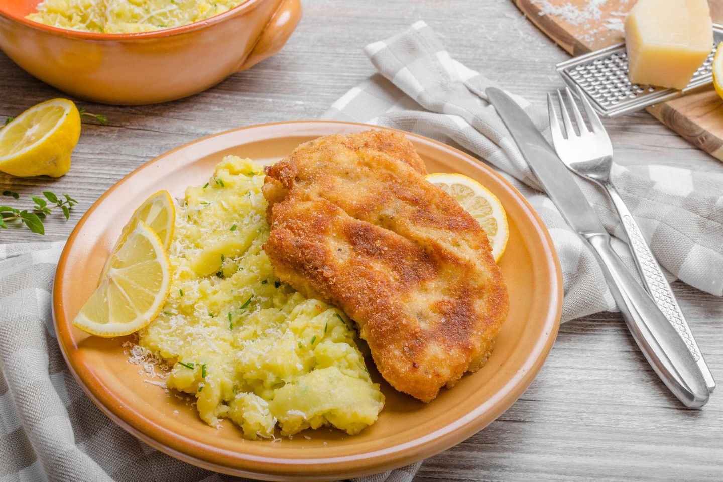 Patiekite su bulvių koše, kurią virkite įprastai, tačiau pabaigoje kartu su karštu pienu įmaišykite keletą šaukštų parmezano – tai bulvių košei suteiks visai kitokio charakterio.