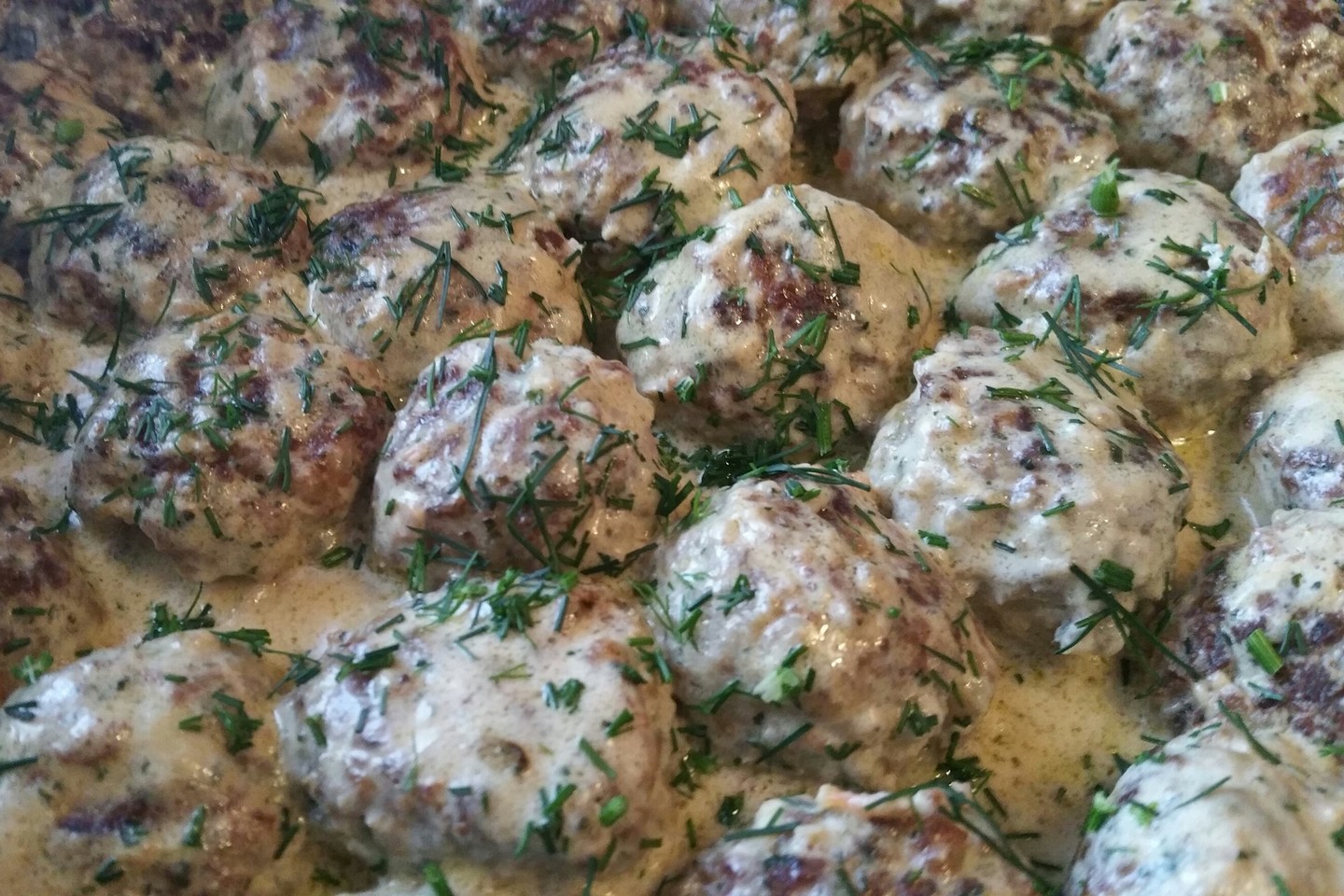 Galiausiai į kukulius supyliau grietinėlę, pagardinau druska, pipirais, smulkintais krapais ir dar kelias min. kartu patroškinau.