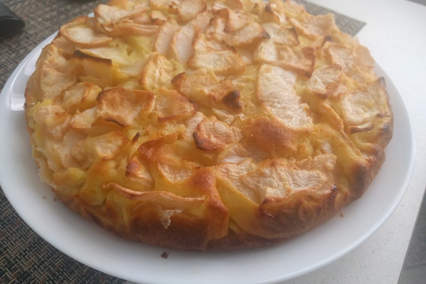 Kepkite 35-40 min. 200 laipsnių orkaitėje. Iškepusį pyragą apverskite į lėkštę.