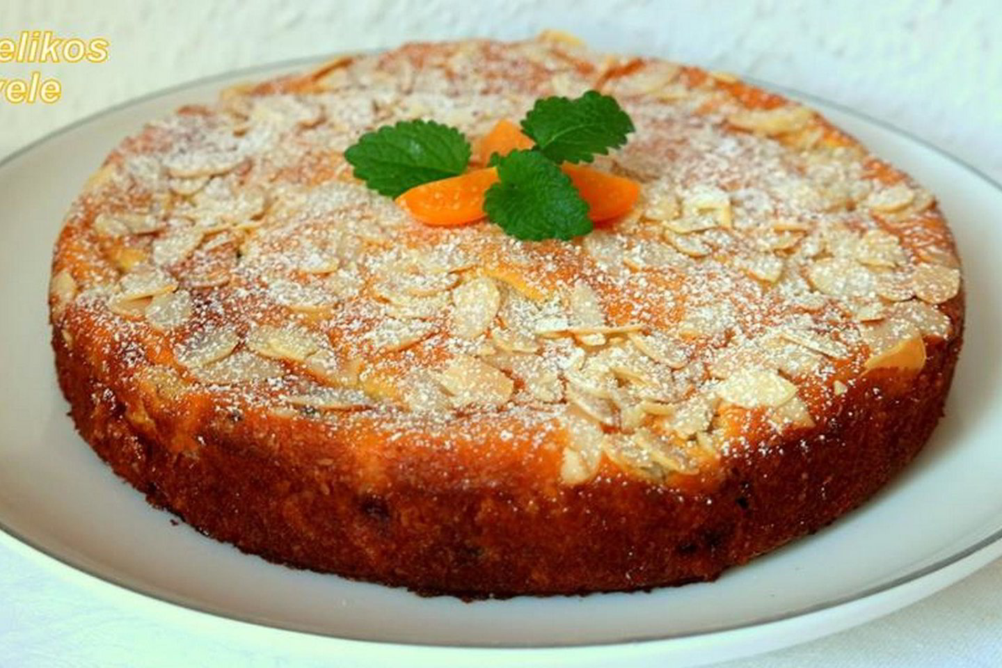 Torto formos dugną iškloti kepimo popieriumi, ištepti aliejumi (kraštus taip pat), pabarstyti kokosų drožlėmis arba dziūvėsėliais, supilti paruoštą tešlą, o viršų apibarstyti migdolų drožlėmis.