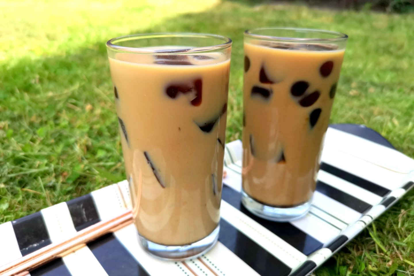 - 2 puodelių ar stiklinių mėgstamos kavos, paruoštos su pienu.