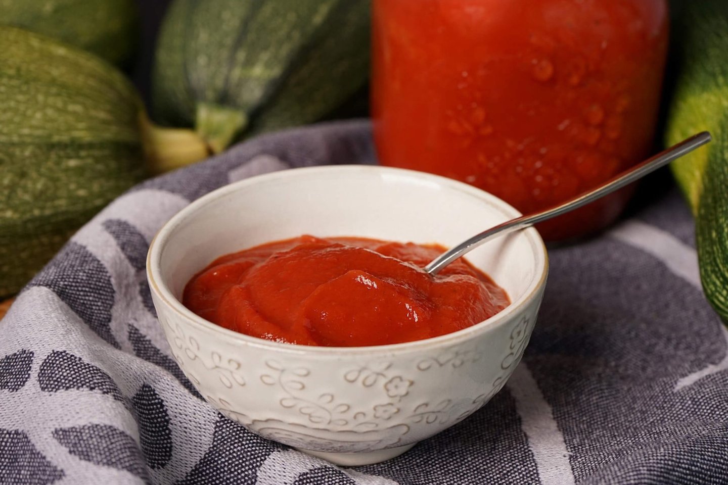 Labai skanus ir tekstūra niekuo nesiskiriantis nuo pirktinio, dėl mažesnio cukraus bei acto kiekio jis yra dar ir gerokai sveikesnis.