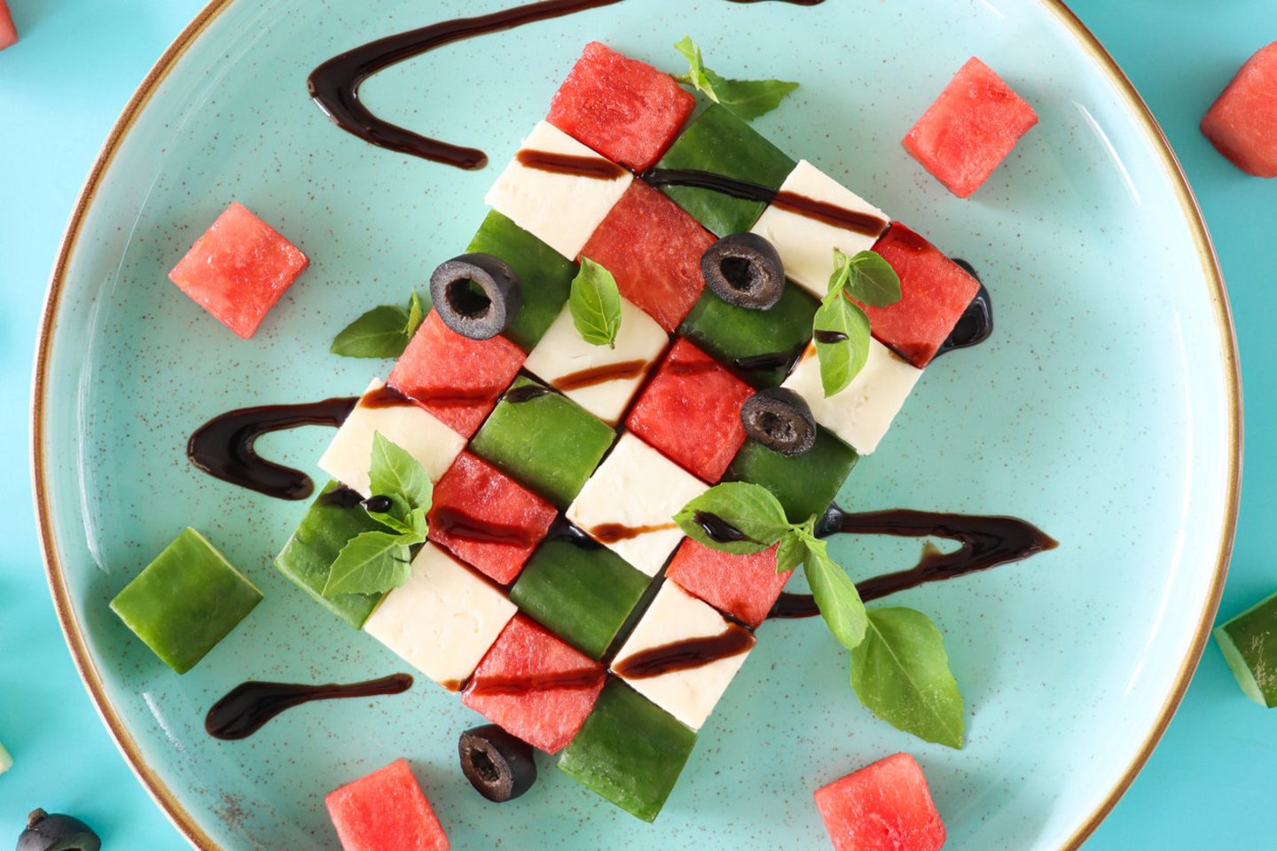 Arbūzo ir fetos derinys naujai – šachmatinės salotos