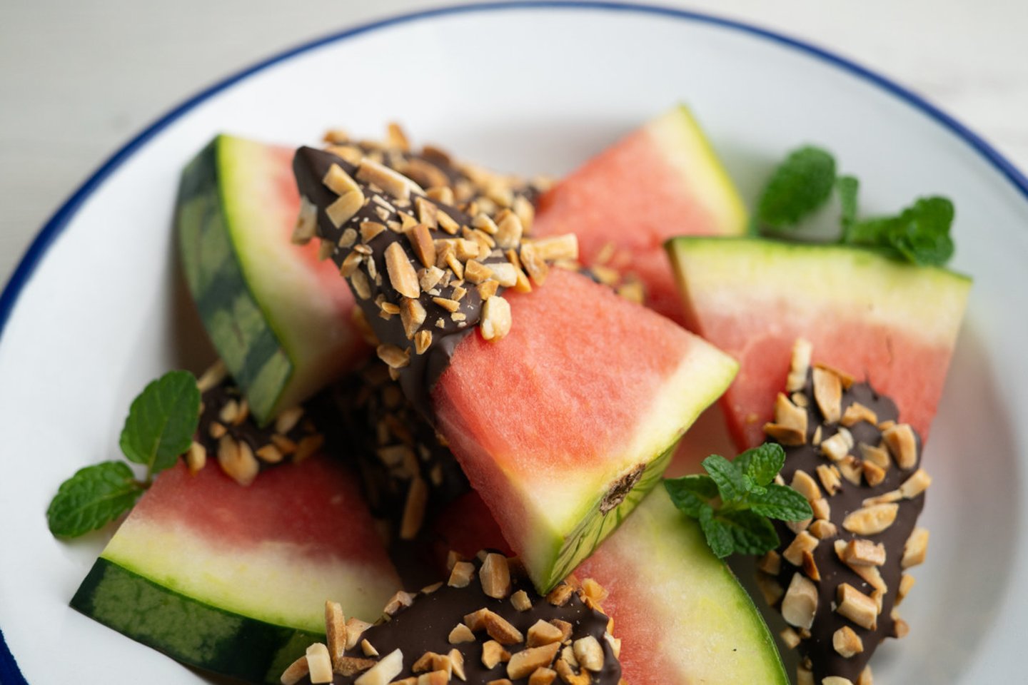 Greitam ir gaiviam desertui – šokoladu ir migdolais skanintas arbūzas