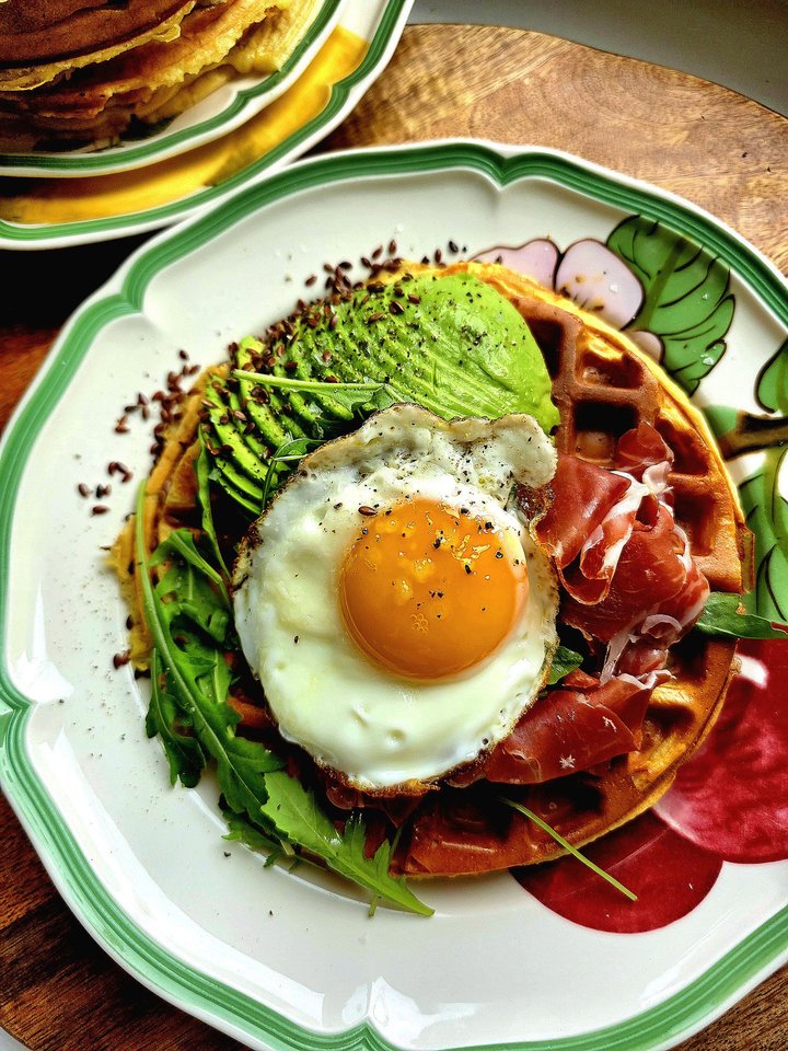 - Vaflius patiekti galima su keptu kiaušiniu, avokadu, šonine, žalumynais.