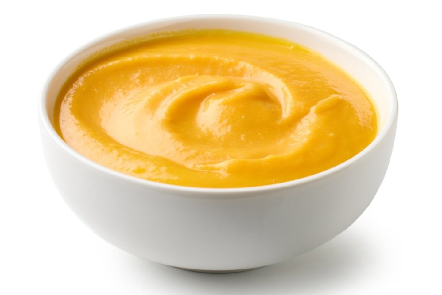 Nupilkite išvirusių daržovių vandenį. Sudėkite sviestą, aitriąją papriką, svogūnus, įpilkite šlakelį pieno. Sutrinkite viską trintuvu iki vientisos, ryškiaspalvės masės.