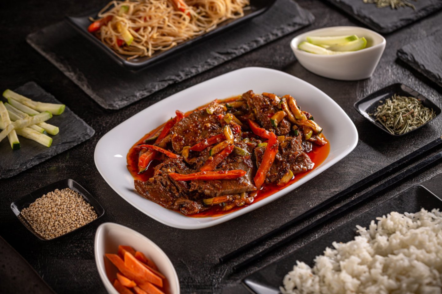 Patiekalą patiekite su virtais ryžiais ar makaronais, pabarstykite sezamo sėklomis.