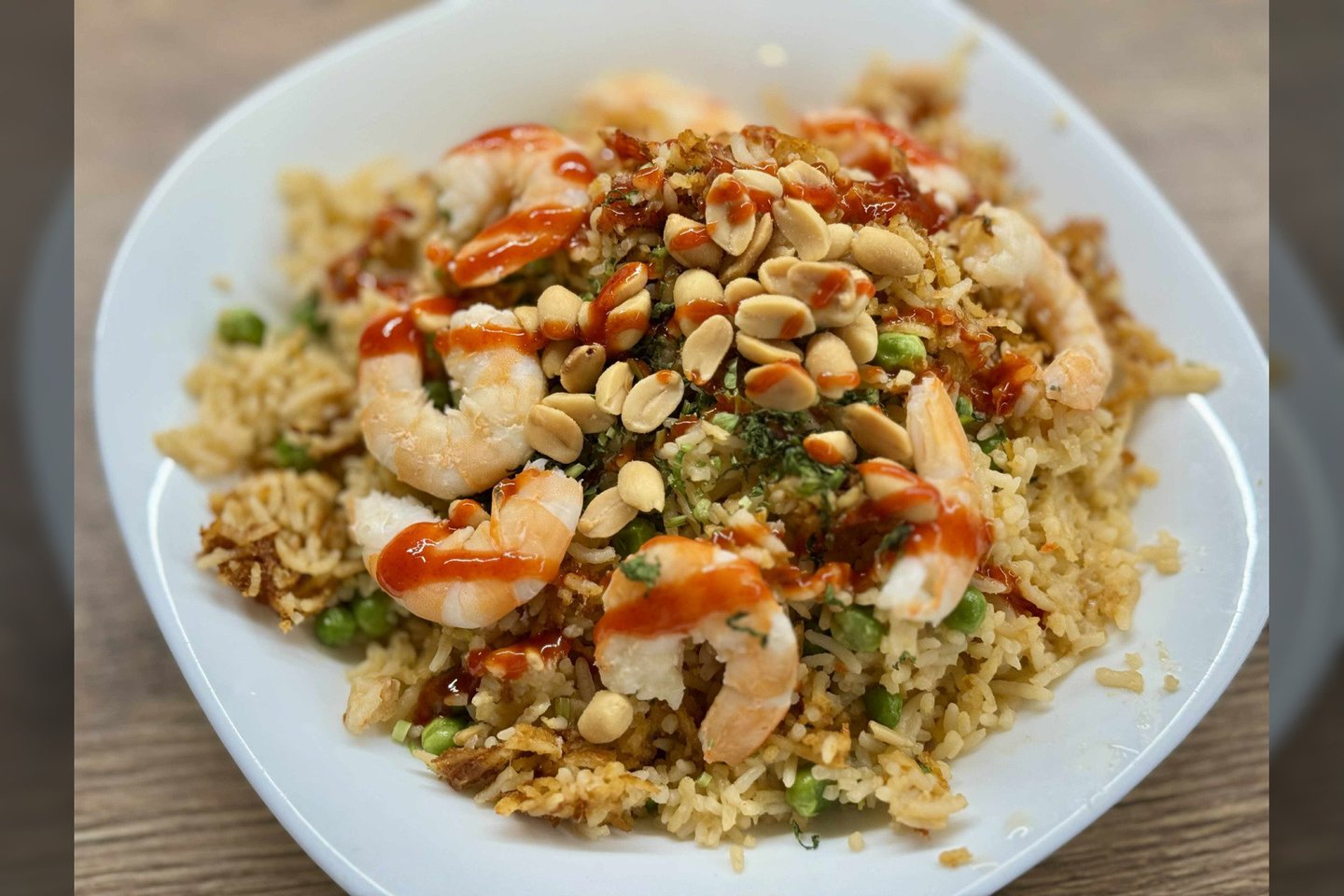 Pabarstykite skrudintais žemės riešutais, užpilkite šiek tiek čili ar saldžiarūgščio padažo ir papuoškite žalumynais.