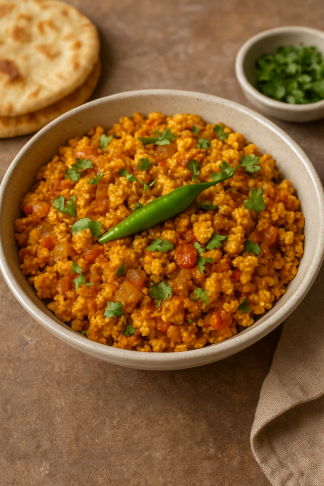 „Kepta pikantiška indiška varškė. Šis patiekalas yra indiška „kiaušinienės“ versija, bet naudojama varškė ar sūris“, – rašė Indiškos virtuvės gerbėja.