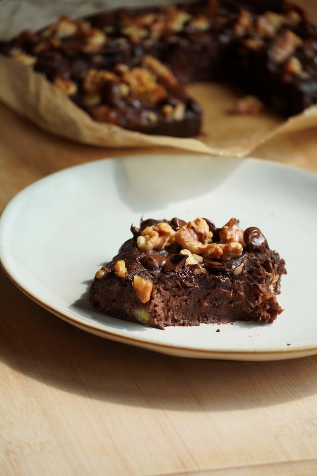 Bananus sutrinkite šakute, įmaišykite riešutų kremą, kakavą, klevų sirupą ir druską. Gautą masę supilkite į kepimo popieriumi išklotą skardą, pabarstykite riešutais ir šokolado gabalėliais. Pastarųjų galima įmaišyti ir į tešlos vidų. Kepkite 180 laipsnių temperatūros orkaitėje apie 25 minutes. Viršus turi atrodyti sustingęs, o viduje gali likti drėgmės. Prieš ragaudami leiskite šiek tiek pravėsti. Skanaus!