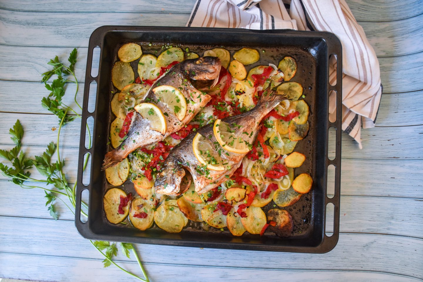 Vienos skardos vakarienė – dorada su bulvėmis