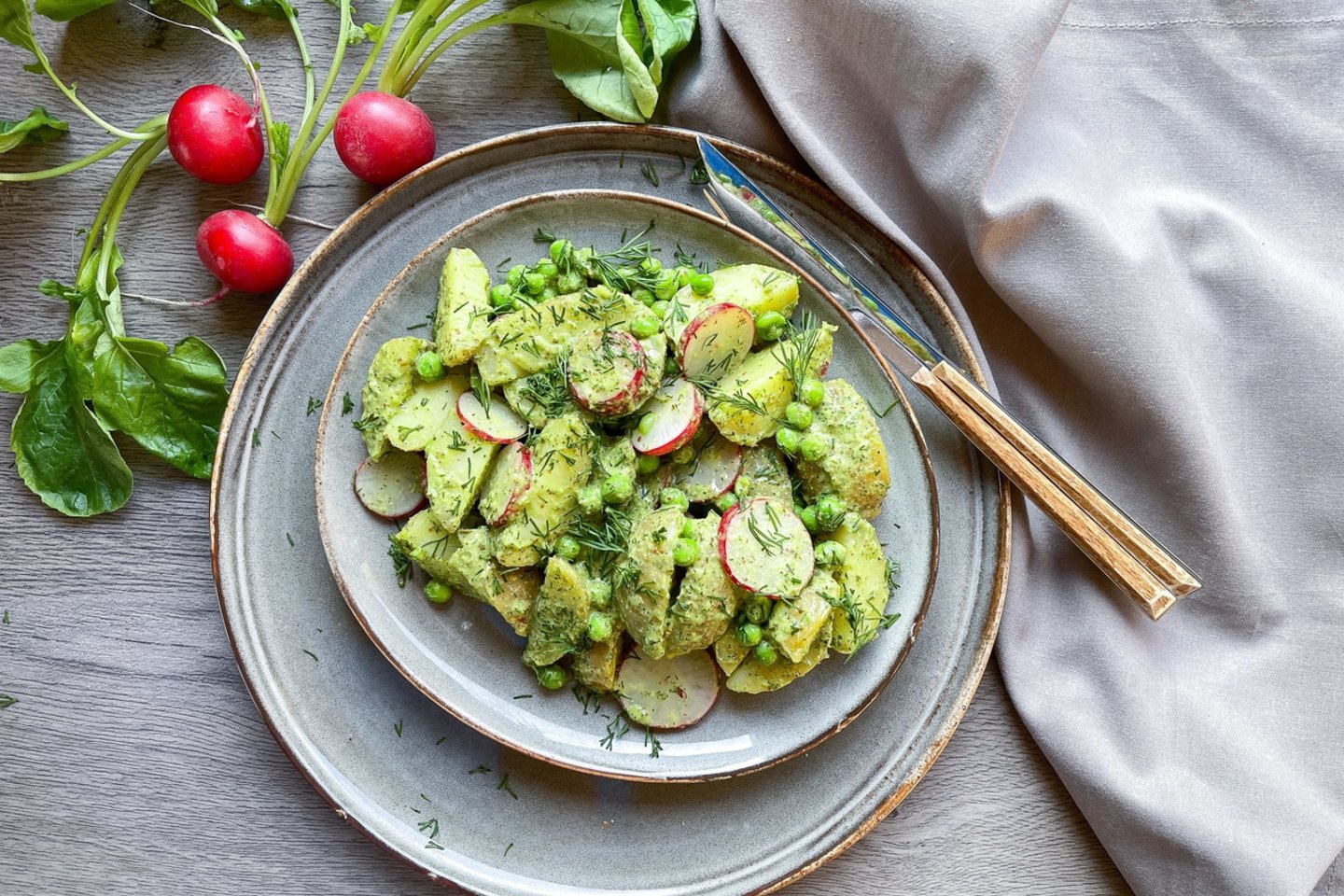 Kviečiame išbandyti šviežių bulvyčių salotas su ridikėliais ir žirneliais