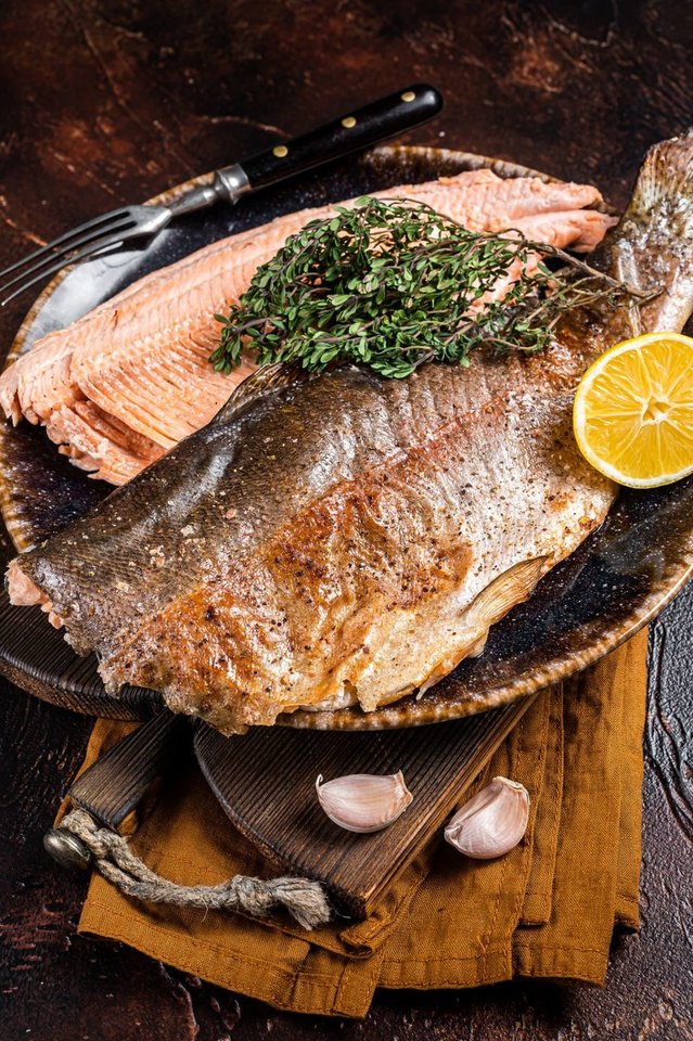 Orkaitėje troškinta upėtakio filė su citrina ir sviestu