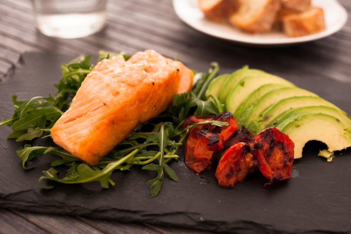 Keptas upėtakis su pomidorais ir avokadu