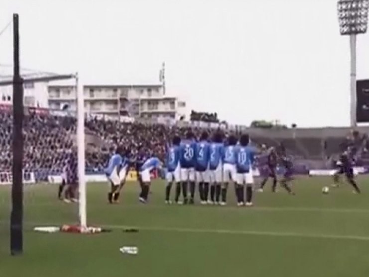 Kad nuginkluotų vartininką „Kyoto Sanga“ klubo futbolininkai atliko itin sudėtingą ir komišką kombinaciją prieš atliekant baudos smūgį. Keturi futbolininkai sustoję eilute prabėgo pro kamuolį, o spyrį atliko penktas eilėje buvęs žaidėjas. Taktika pasiteisino, o kamuolys galingai įskriejo į dešinį vartų kampą.