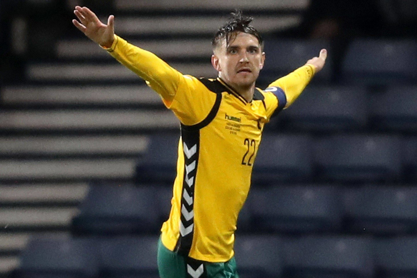 F.Černychas Lietuvą į priekį išvedė 59 minutę, bet Jamesas McArthuras 89-ąją rezultatą išlygino.