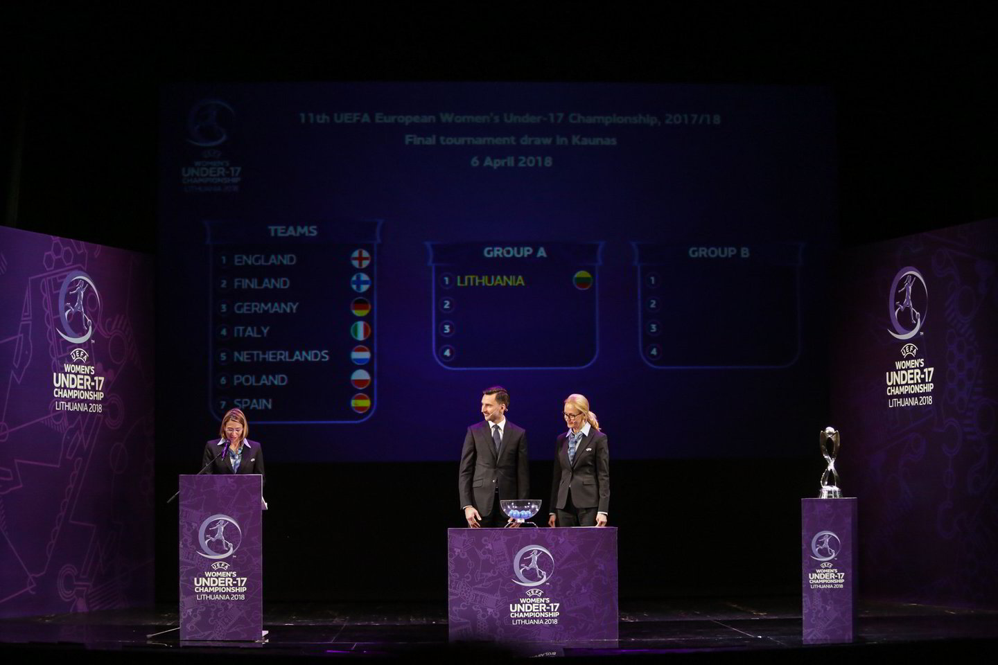 Burtų traukimo renginyje dalyvavo ir UEFA Moterų futbolo komiteto pirmininkė Anne Rei.