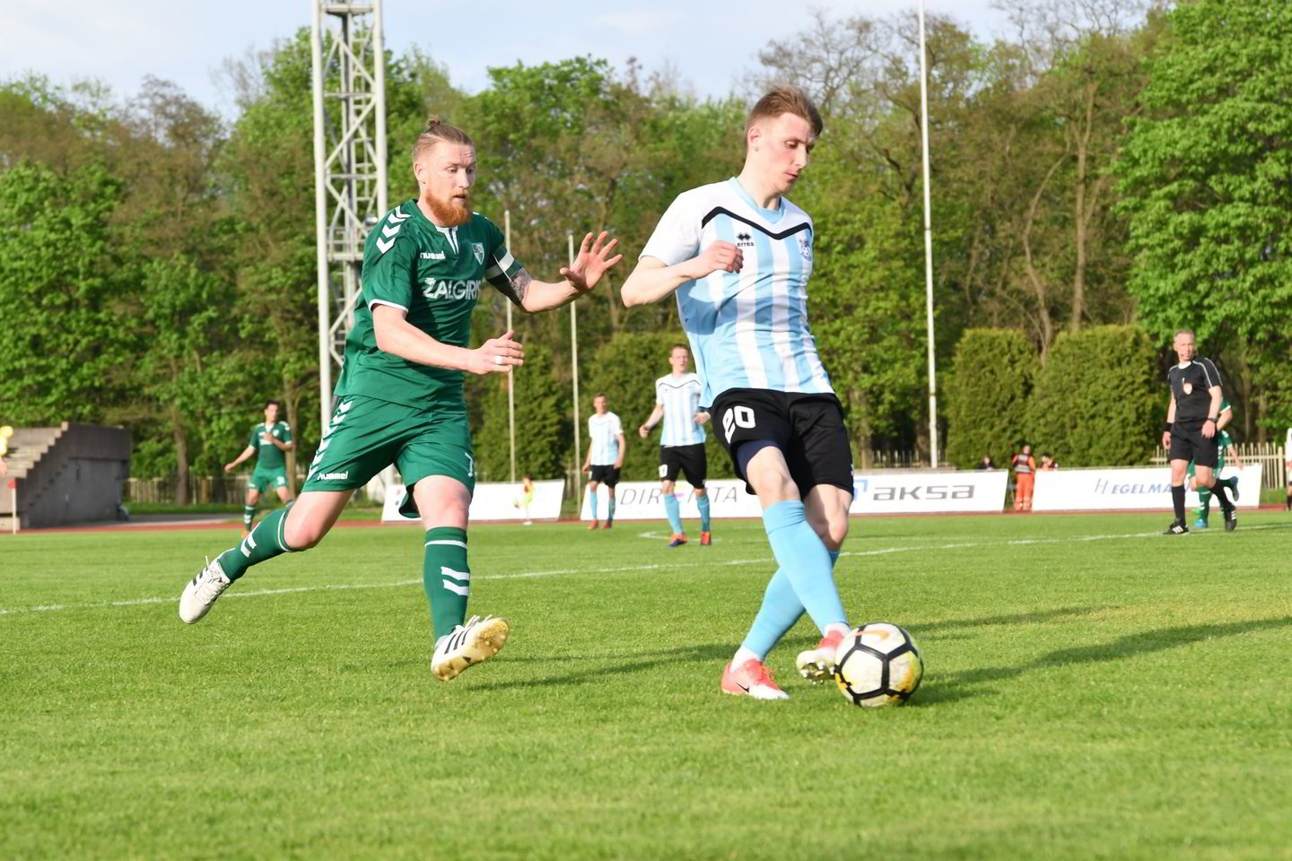 Pirmo kėlinio viduryje šeimininkų futbolininkas Gabrielius Zagurskas pastebėjo vartus palikusį vartininką Guilhermę Cioletti ir mėgino pergudrauti jį tolimu smūgiu, bet brazilas spėjo sugrįžti ir išmušti kamuolį.