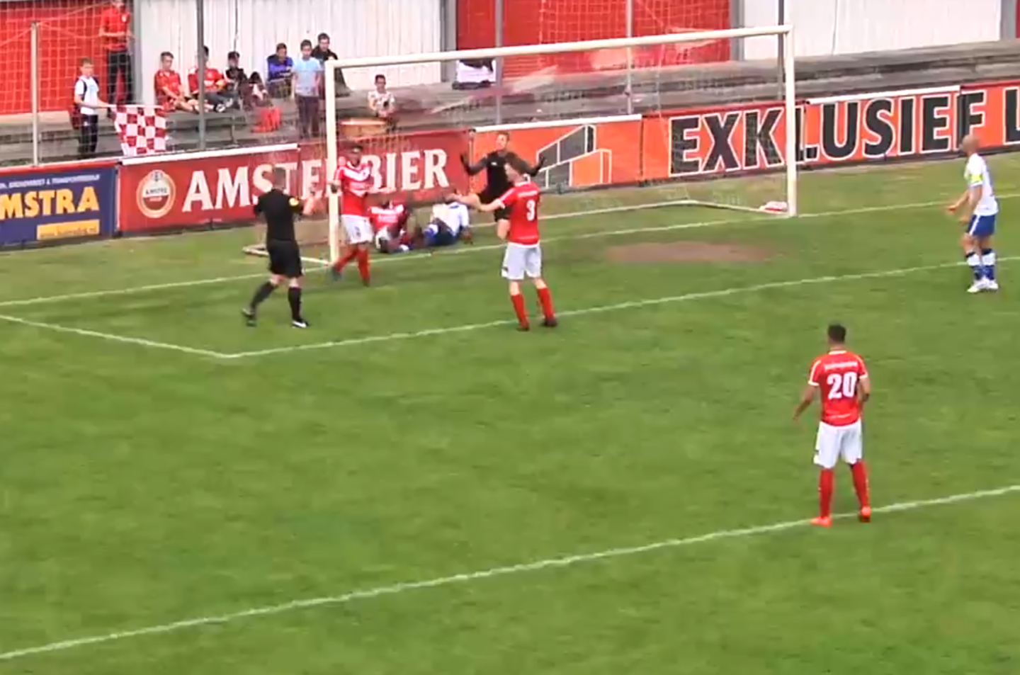 Vienoje iš „HSV Hoek“ atakų nuo „Harkemase“ gynėjo atšokęs kamuolys atsitrenkė į rungtynių arbitro koją ir įlėkė į vartus.