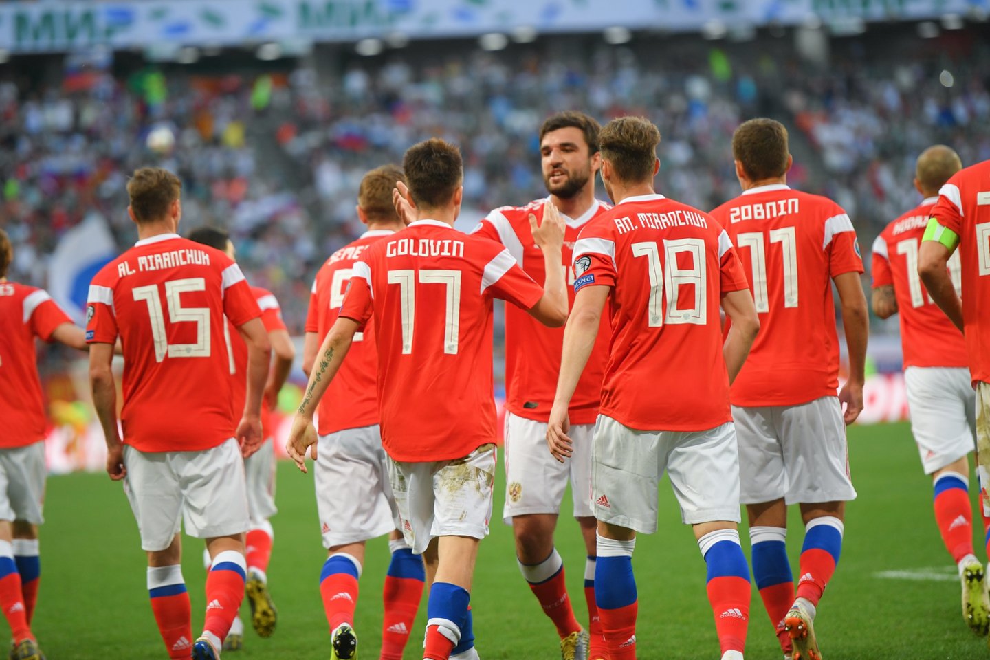 „Mums kol kas jokia tarptautinė organizacija ar WADA neturi jokių pretenzijų“, – reaguodama į anglų žiniasklaidos mintis apie galimą rinktinės diskvalifikaciją iš atrankos ar čempionato teigė Rusijos futbolo sąjungos spaudos tarnybos vadovas Kirilas Melnikovas.