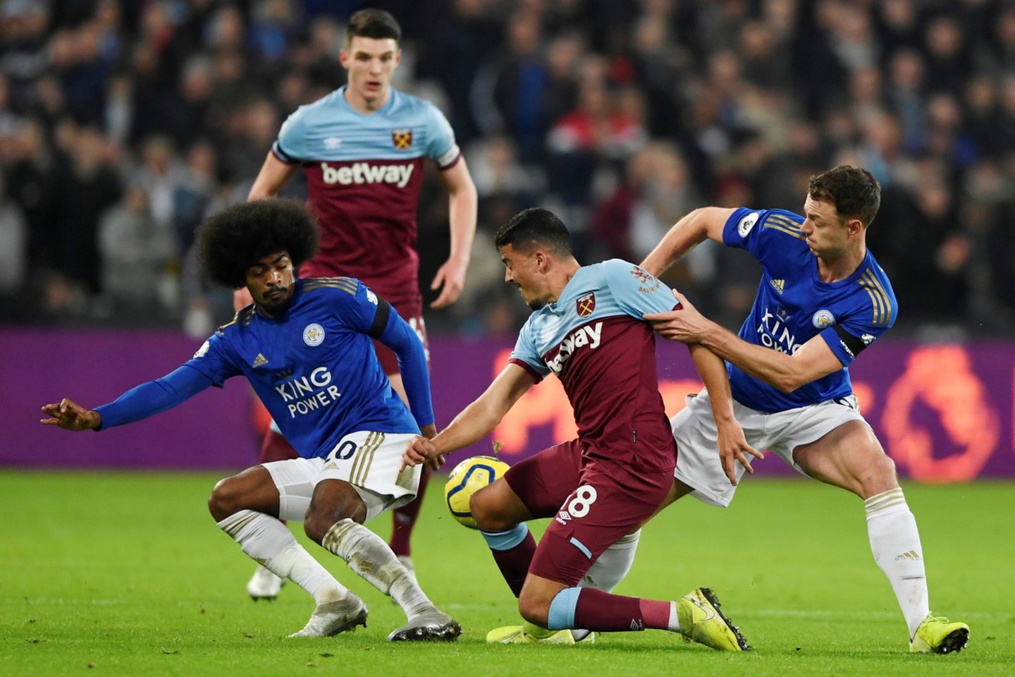 „West Ham“ – „Leicester“ 1:2. Pablo Fornals (45)/Kelechi Iheanacho (40), Demarai Gray (56).
