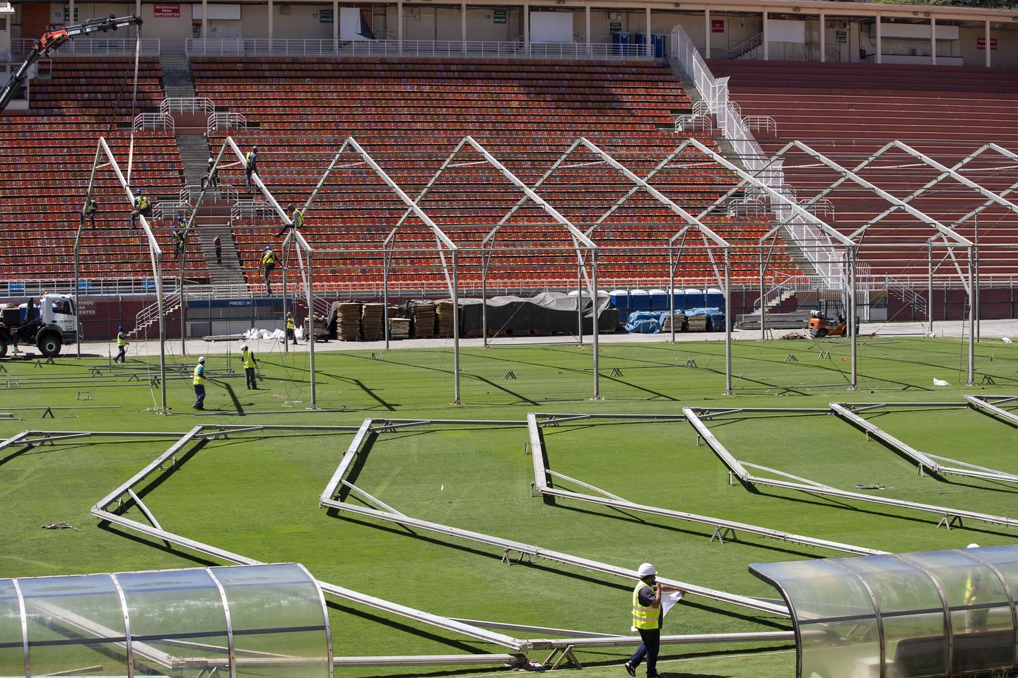 San Paulo valstijos pirmenybės, kurių rungtynės buvo žaidžiamos „Pacaembu“ stadione, sutabdytos jau ilgiau nei savaitę. Pirmadienį stadione jau vyko darbai – tiesiami kabeliai, klojamos metalinės konstrukcijos.