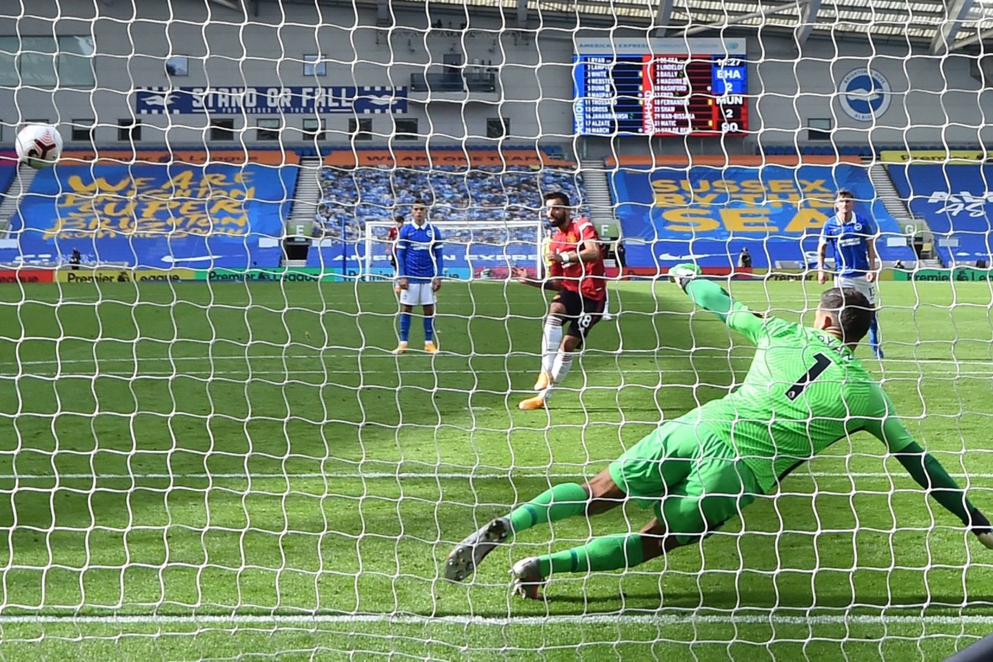 Tuo metu teisėjas jau buvo paskelbęs rungtynių pabaigą, tačiau po vaizdo peržiūros buvo nustatyta, kad paskutinėje „United“ atakoje „Brighton“ futbolininkas Nealas Maupay gindamasis ranka palietė kamuolį.