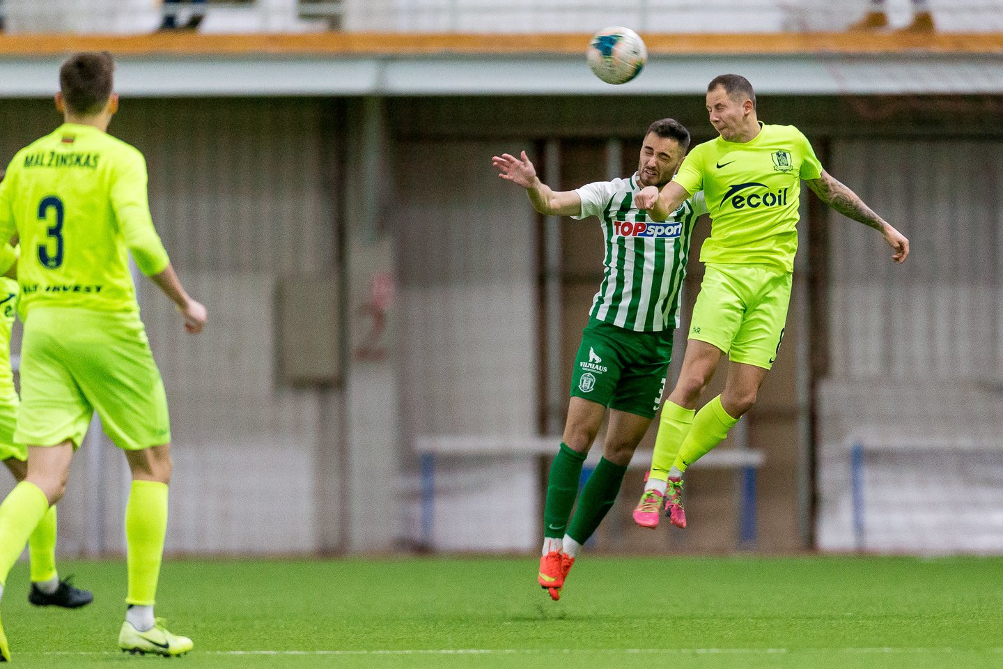 Dvikova prasidėjo apylygiai. Į M. Ramanausko pavojingesnį smūgį „Žalgiris“ atsakė gražia kontrataka, į Luko Kochanausko sudrebintą vartų skersinį, žalgiriečiai atsakė pusproge po kampinio. Tas L. Kochanausko smūgis, apskritai, buvo pavojingiausias pirmojo kėlinio pirmoje pusėje. Aikštės viduryje suklydus žalgiriečiams, M. Ramanauskas numetė kamuolį L. Kochanauskui, o šis iš šešiolikos metrų tik per plauką nepasiuntė kamuolio į tinklą.