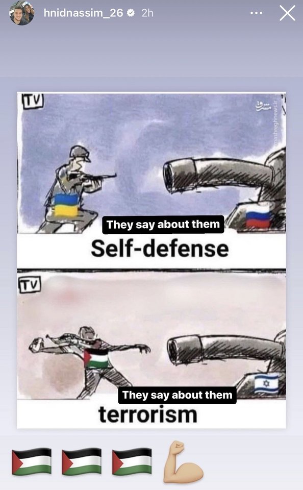 „Žalgirio“ gynėjas pasidalino paveikslėliu, kuriame vaizduojami teroristinės organizacijos „Hamas“ išpuoliai prieš Izraelį. Minėtame paveikslėlyje „Hamas“ išpuoliai yra lyginami bei tapatinami su Ukrainos kariuomenės kovomis prieš Rusiją.