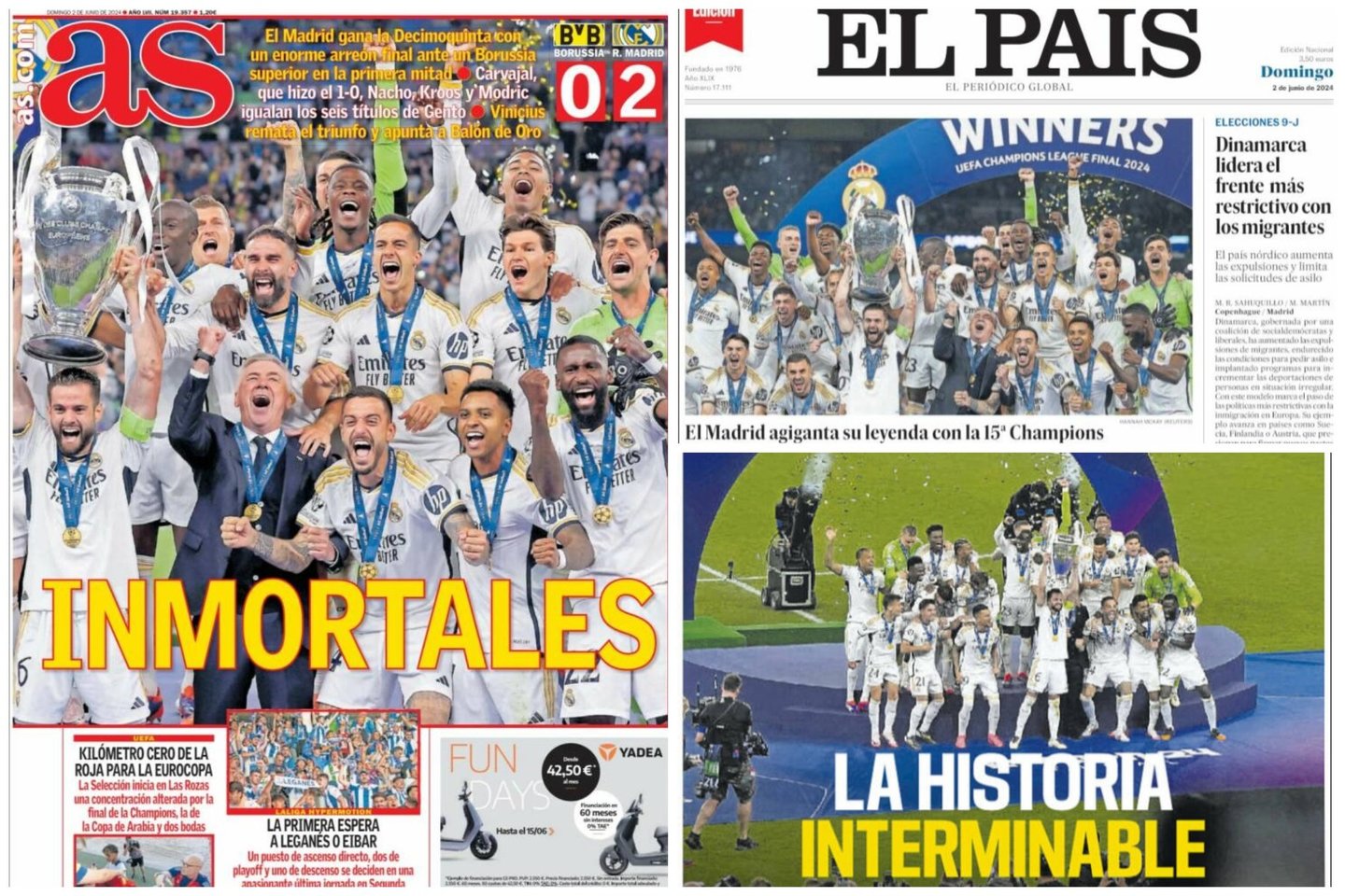 Po sunkios pergalės prieš Dortmundo „Borussia“ triumfuojančių „Real“ futbolininkų nuotraukos buvo išspausdintos ne vien sporto, bet ir visų svarbiausių šalies dienraščių pirmuosiuose puslapiuose.