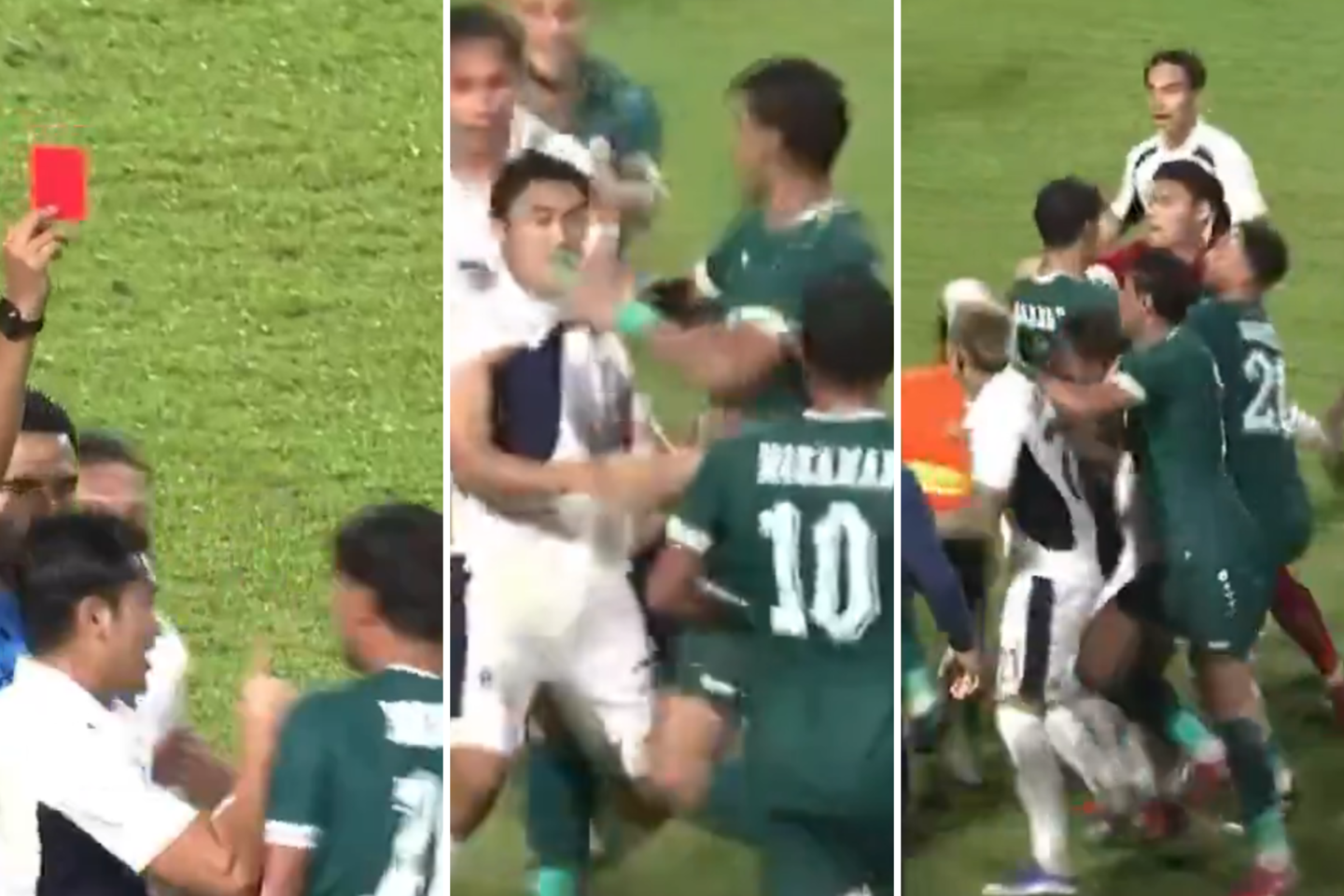 Ketvirtąją antrojo kėlinio pridėto laiko minutę tas pats M.Ali be skrupulų šiurkščiai rėžė tailandiečiui Chanathipui Songkrasinui per kojas ir užsidirbęs tiesioginę raudoną kortelę buvo išvarytas iš aikštės. Tailando futbolininkai staiga masiškai pribėgo prie oponento ir prasidėjo abiejų šalių atstovų konfliktas, į kurį prisijungė ne tik aikštės žaidėjai.