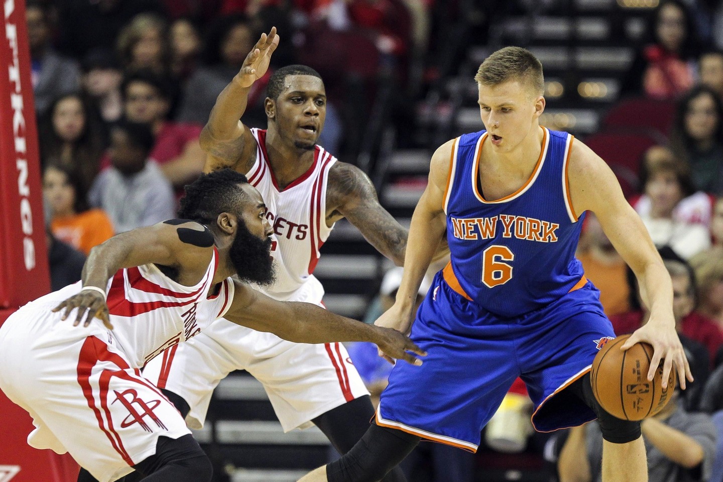 Ketvirtame kėlinyje K.Porzingis ir toliau rinko taškus: pataikė keturias baudas iš tiek pat galimų bei pridėjo dvitaškį, o drama rungtynėse tęsėsi iki pat paskutinių minučių. Iki ketvirčio pabaigos likus žaisti pusantros minutės „Rockets“ pirmavo vienu tašku – 99:98. Vis dėlto dar du baudos metimus pataikė K.Porzingis, o dvitaškį įmetė C.Anthony (102:99). Po netaiklių metimų „Rockets“ krepšininkai desperatiškomis pražangomis bandė išsigelbėti, tačiau C.Anthony ir Lance'o Thomaso rankos nesudrebėjo – 107:102.