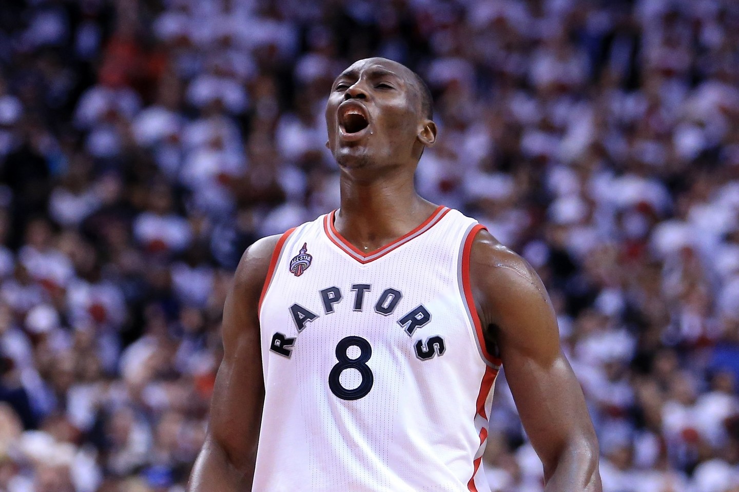 Jis savo pėdsaką palieka ne tik statistikos lapuose – B.Biyombo perduoda energiją komandos draugams ir žiūrovams. Po jo dėjimų „Air Canada Centre“ tiesiog pašėlsta.
