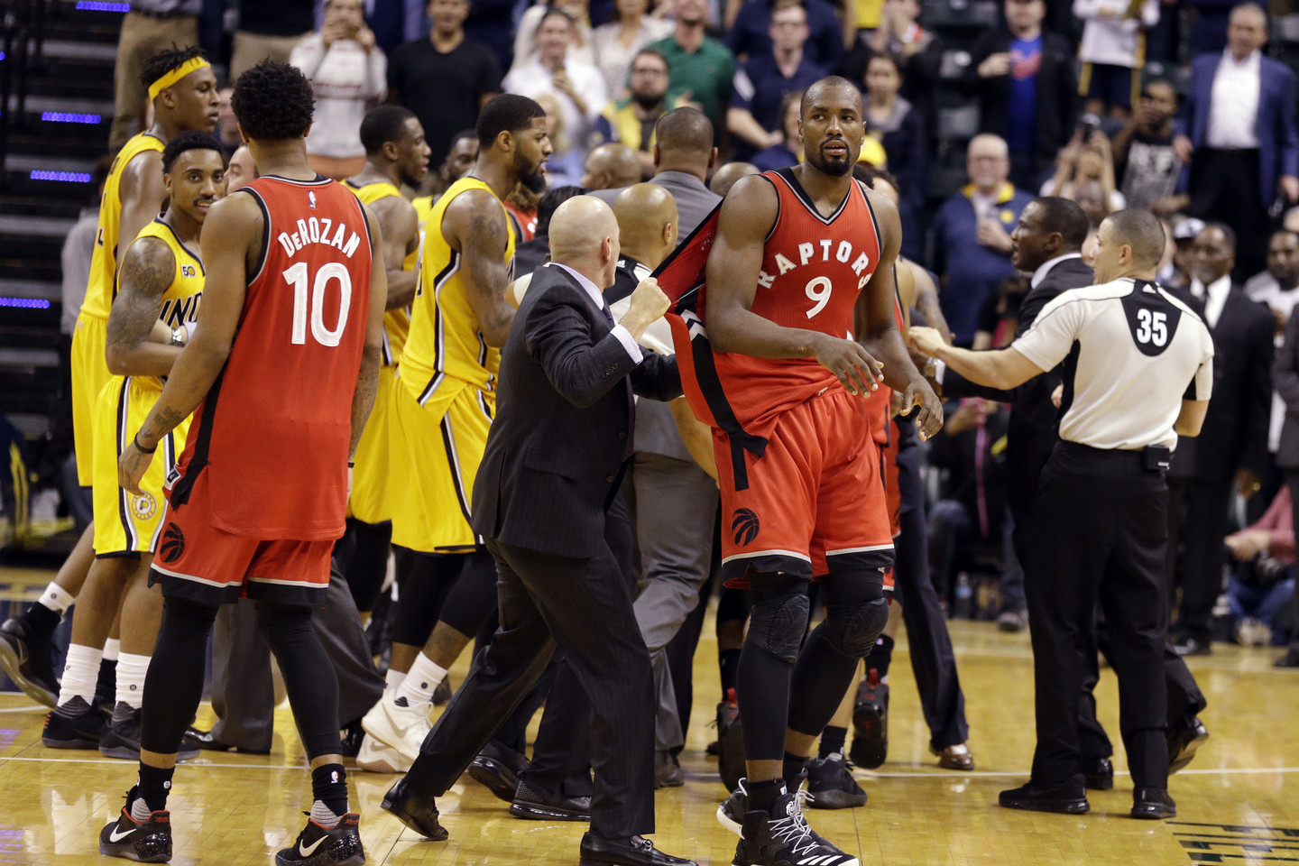 Tuo liko nepatenkinti „Raptors“ žaidėjai, kurie prišoko prie varžovo ir kilo susistumdymas. Žaidėjus išskyrė treneriai ir teisėjai.