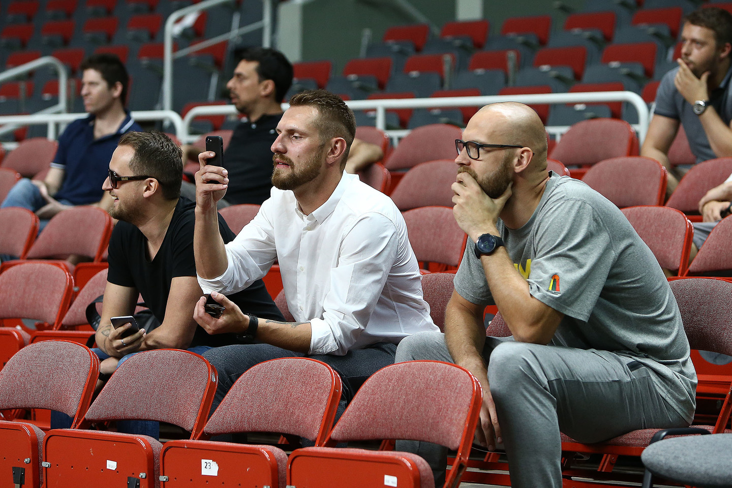 11 tūkstančių vietų turinčioje arenoje aidėjo plojimai, bet jie buvo skystesni nei įprasta – juk plojo tik patys krepšininkai ar rungtynes stebėję broliai Maciai, Antanas Kavaliauskas bei komikai Mantas Katleris su Mantu Stonkumi.