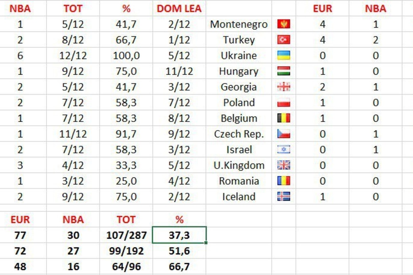 Pasak skaičiavimų, Lietuvos rinktinė neturės 58,3 proc. krepšininkų, kurie varžėsi Europos čempionate. Susumavus rinktinės neturės 37,3 proc. krepšininkų.