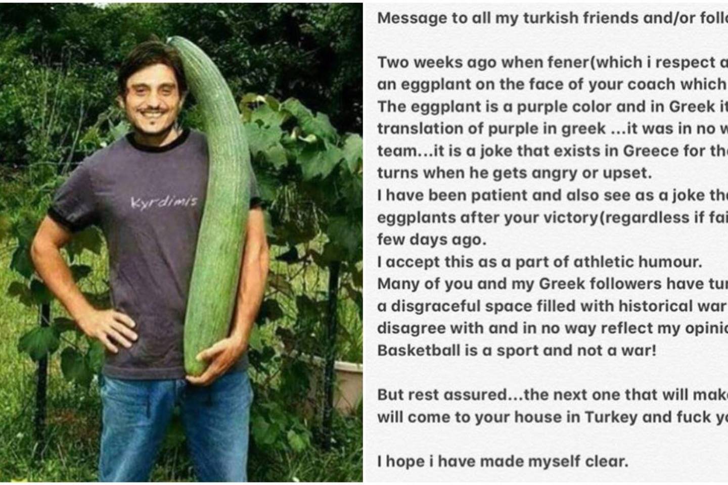 „Jei kažkuris žmogus komentuos kažką apie mano šeimą, aš atvyksiu į Turkiją, į jo namus ir prievartausiu tol, kol jis pradės kraujuoti“, – rašė D.Giannakopoulos.