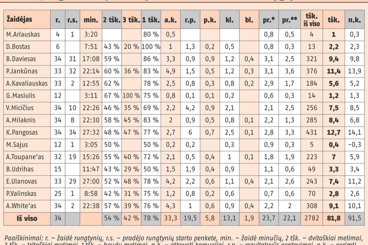 Vienintelis skirtumas – kad per reguliariojo sezono rungtynes „Žalgiris“ pristabdė V.Spanoulį. Jis per abejas rungtynes pelnė vidutiniškai po 13 taškų.