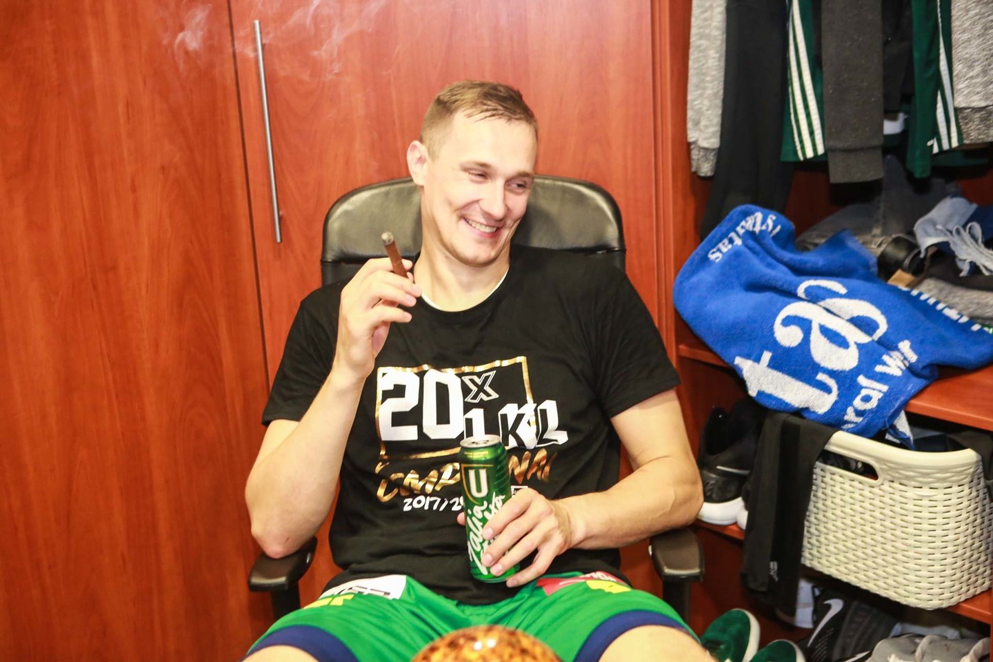 Paklaustas, kas švęs labiausiai, jis tik linktelėjo trenerių kambario link: „Va, ten yra kambariukas. Mums dar toli iki jų šventimo. Jie švęsdavo ir kaip žaidėjai gerai, o dabar, kaip treneriai, tai išvis įspūdingai“.
