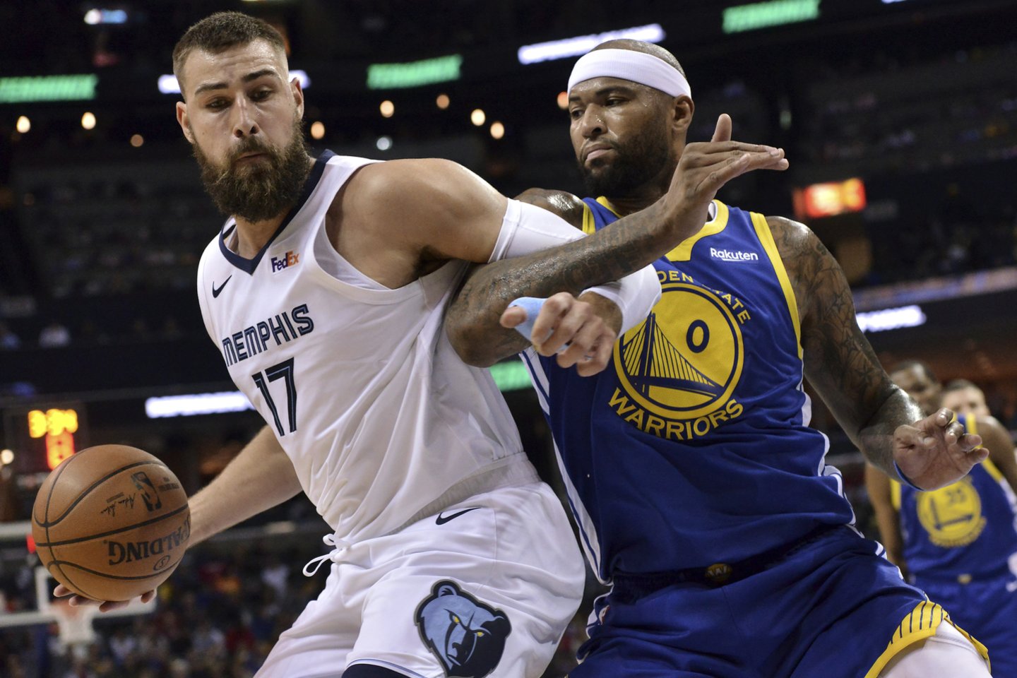 Trečiojo kėlinio viduryje "Grizzlies" fanus J.Valančiūnas privertė griebtis už galvų. Lietuvis vėl identiškai nukentėjo nuo Draymondo Greeno. Gruodžio mėnesį būtent šis žaidėjas išmušdamas kamuolį sukėlė nykščio traumą, laimei šiose rungtynėse panašaus likimo pavyko išvengti.