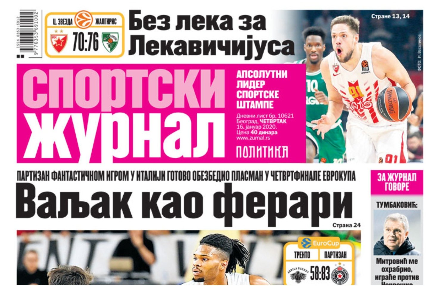 Įdomu, kad „Sportski žurnal“ viršelyje matomiausią vietą skyrė ne Eurolygoje žaidžiančiai „Crvena zvezda“, bet kitam Belgrado krepšinio klubui „Partizan“.