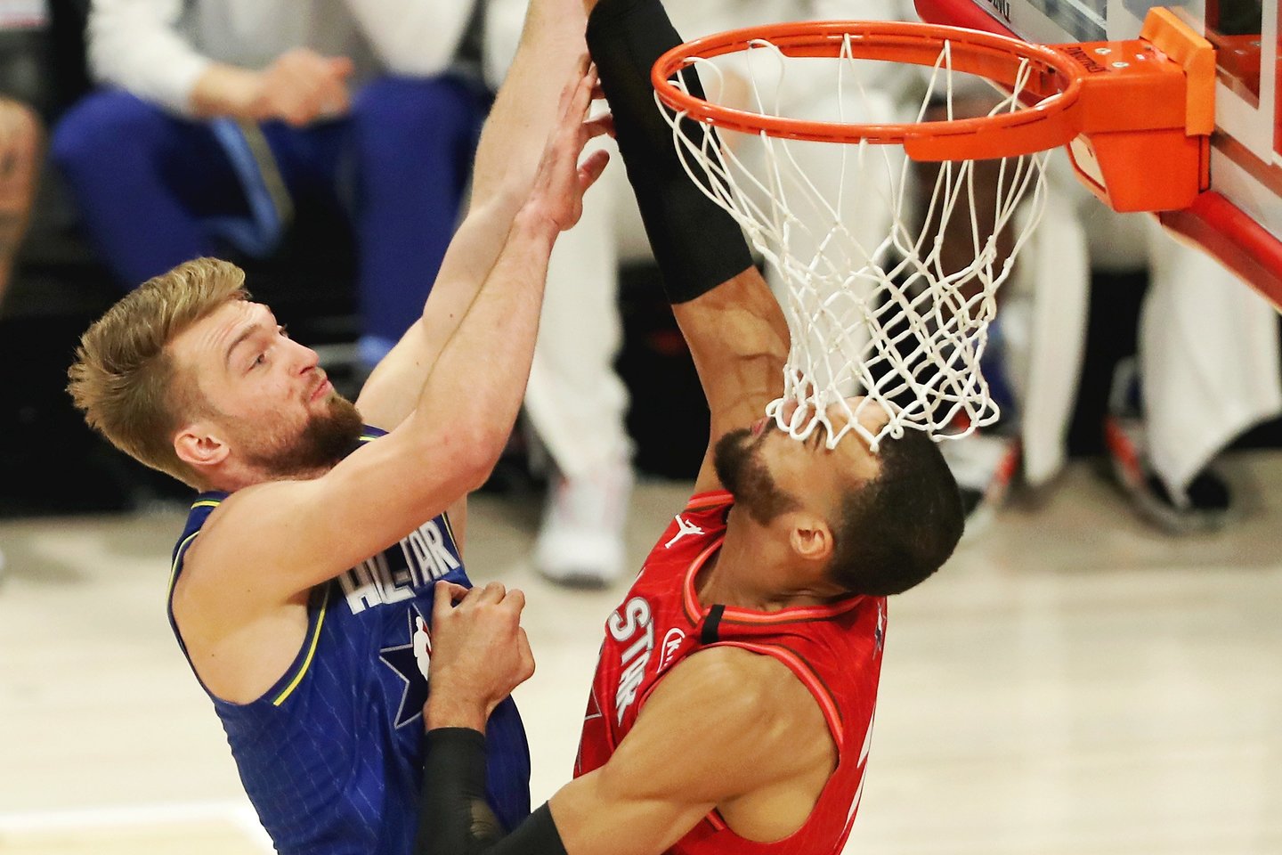 Į superžvaigždės LeBrono Jameso komandą patekęs D.Sabonis aikštėje buvo tik simboliškai, tačiau spėjo praleisti 19 minučių, per kurias pelnė 2 taškus ir atkovojo 6 kamuolius. O dvikovos pabaigoje D.Sabonis šokinėjo su savo komandos draugais – po velniškai įtemptos kovos L.Jameso komanda triumfavo 157:155.