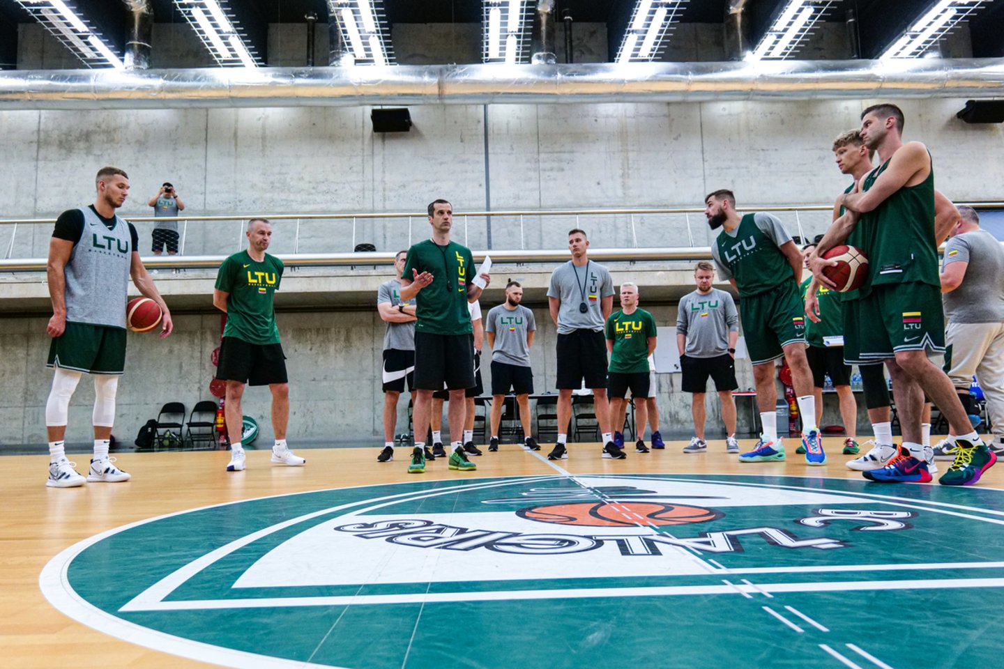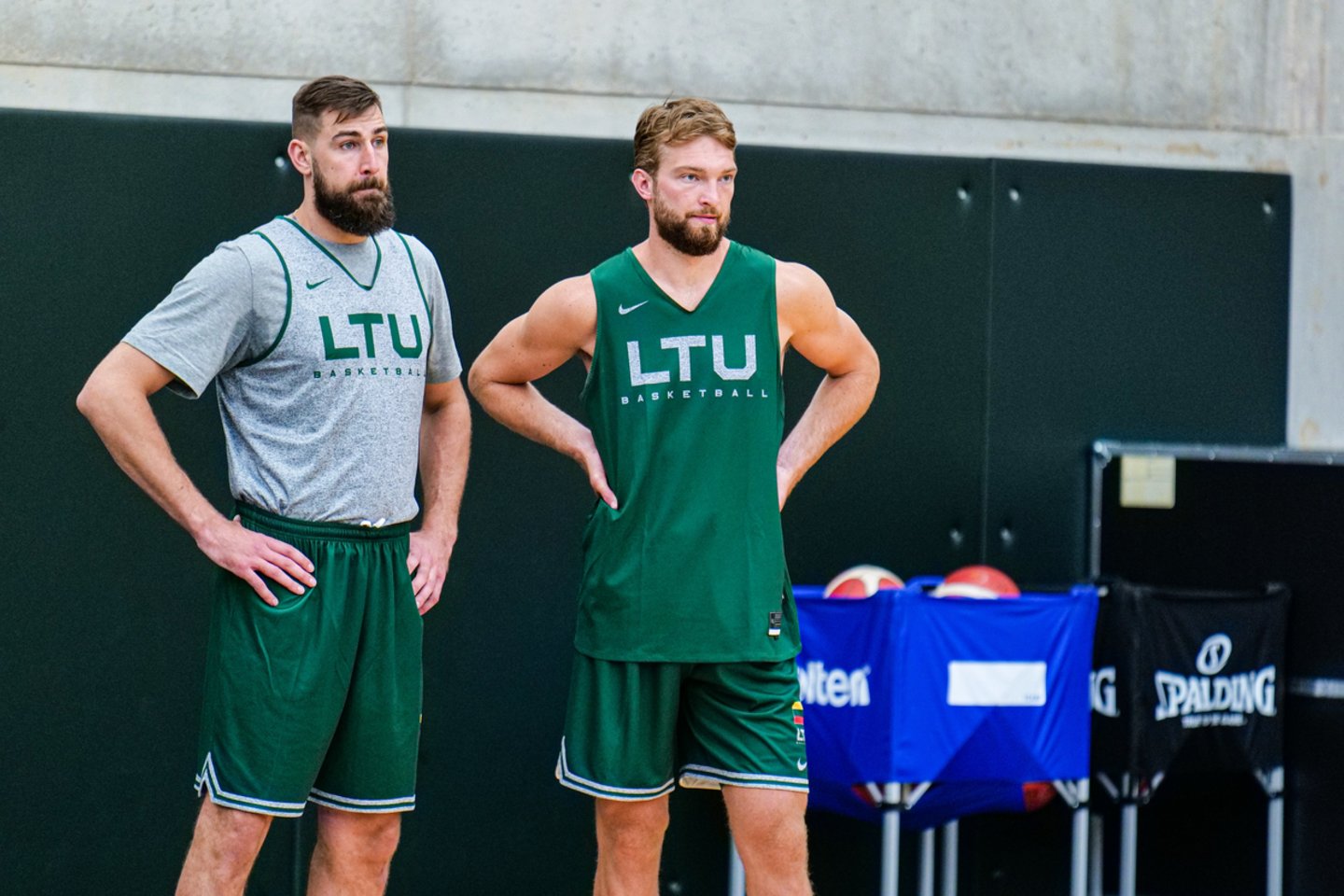 Su komandos draugais stovykloje prakaitą jau lieja ir anksčiausiai iš visų krepšininkų sezoną baigę du NBA bokštai – „Memphis Grizzlies“ vidurio puolėjas Jonas Valančiūnas ir „Indiana Pacers“ aukštaūgis Domantas Sabonis.
