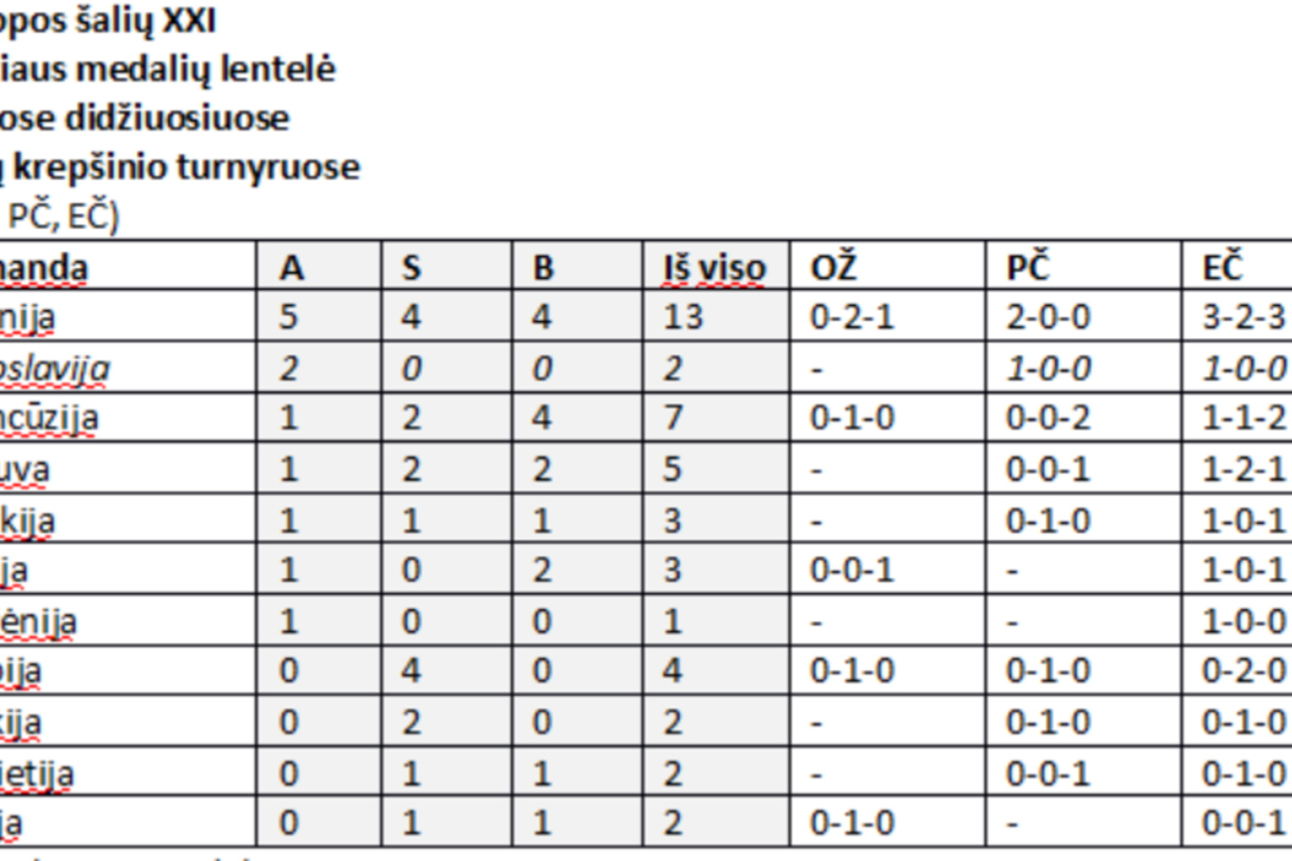 Pagal XXI amžiuje laimėtų medalių skaičių Lietuva tarp Europos šalių atsilieka tik nuo Ispanijos ir Prancūzijos.